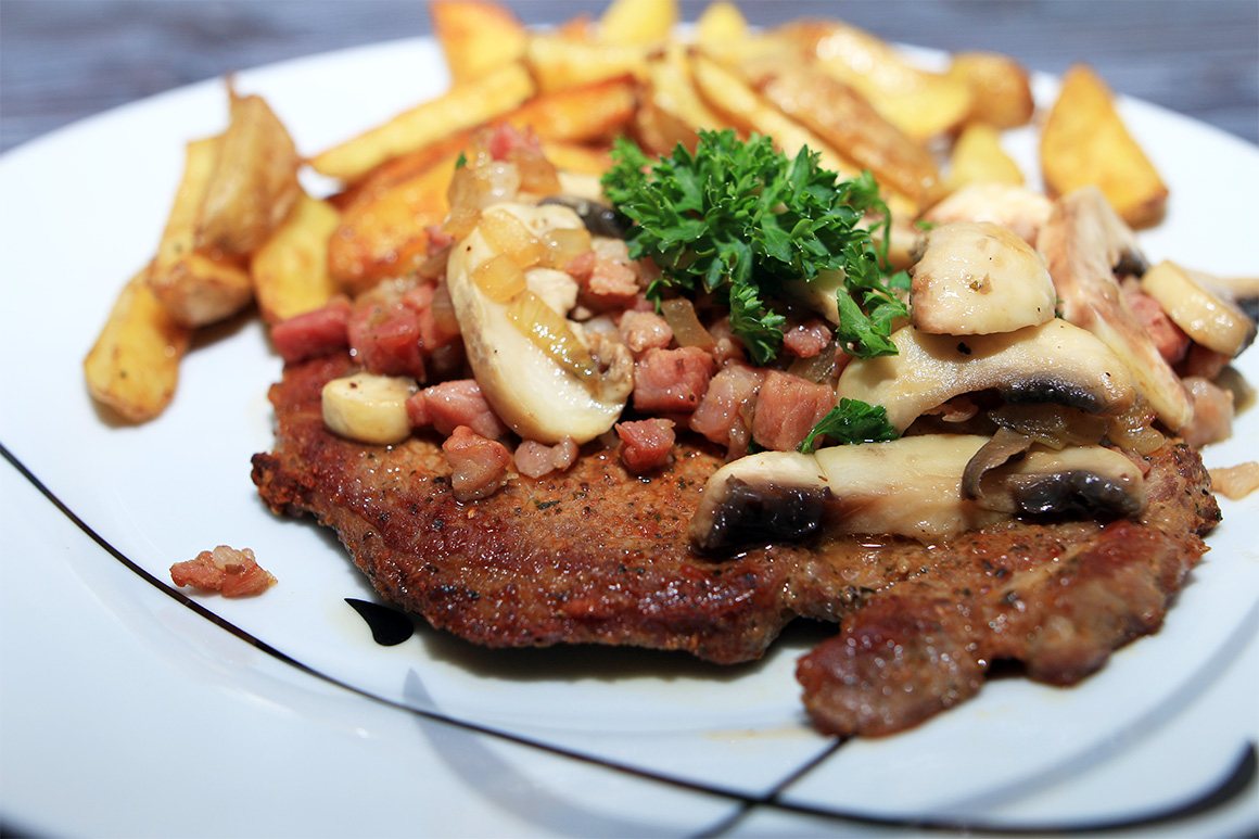 Zwiebeln (nach Jägerart) runden sie das Geschmackserlebnis richtig ab.