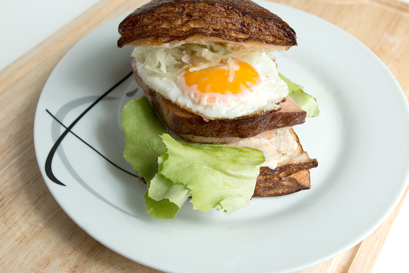 Leberkäse zubereitet. Eine schärfere Variante könnte mit Jalapeno