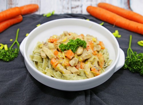 Ein köstliches Hauptgericht: Rahmgeschnetzelte mit Karotten und Porree