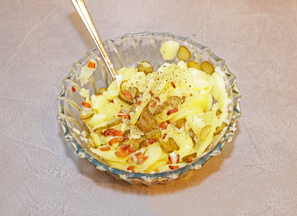 ist ein Kartoffelsalat mit einem Essig-Öl-Dressing. Er schmeckt